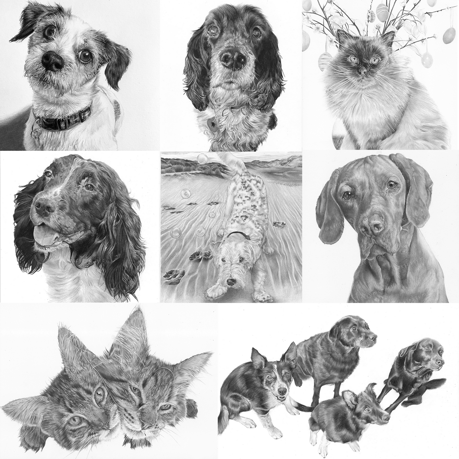 Starting at £95 for a 6 x 6 inch mini portrait, up to £365+ for a large 11 x 14 inch portrait. There is an additional cost for more than one pet per portrait.